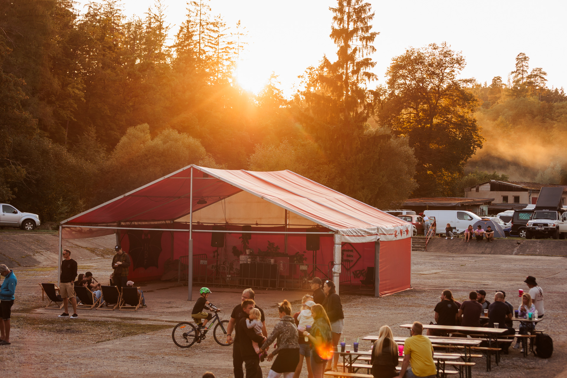 K dispozici je klubovna s vybavenou kuchyní, otevřený bar s pípou a lednicemi, toaleta se sprchou a možnost přespání v podkroví. Topí se kamny ve spodní místnosti, takže spaní je ideální spíš od jara dál. Součástí areálu je také nohejbalové hřiště, venkovní posezení, hudební stage a samozřejmě bike park s pumptrackem. Prostor, kde můžete být v klidu i hluční. Sportovat, slavit, posedět – nebo všechno dohromady.